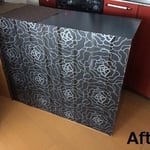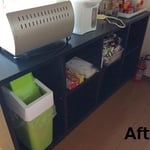 背面も仕上がり、物入れ、ゴミ箱入れ、カウンターとしても使用でき、お客様に感動して頂きました。