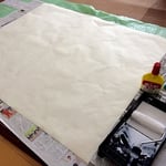 木工用ボンドを水で溶かしてローラーを使ってのばしていきます。
