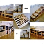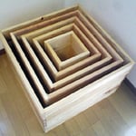 その名も「Dan Dan Dan」20㎝角から60㎝角まで10㎝毎に段々に大きくなる箱を作りましたが、いくつもの組立パターンで様々な表情になります。