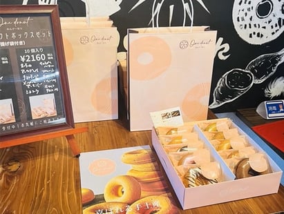 パッケージは、手土産用のドーナツの個包装、箱、紙袋を計画しました。